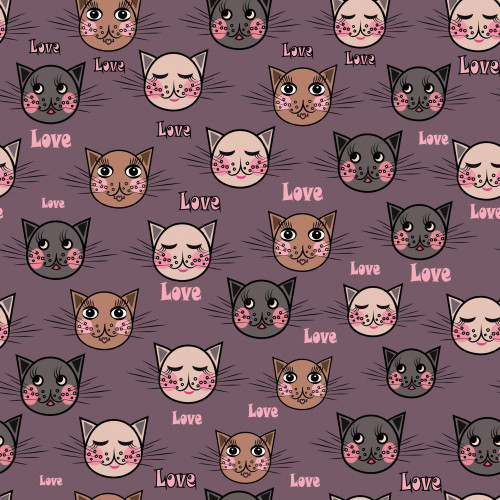 Blouse fabric Jessica cats on purple