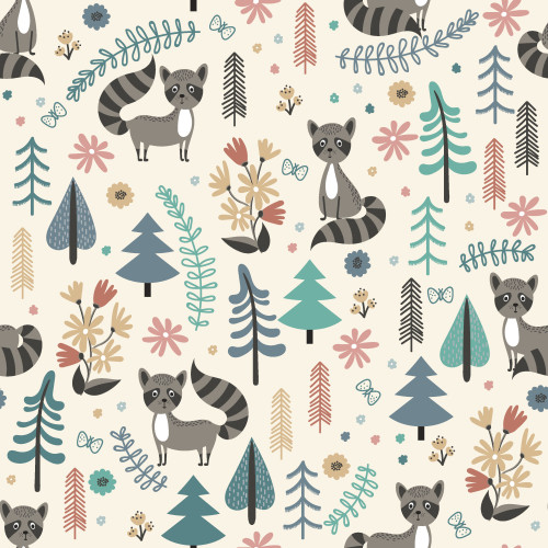Blouse fabric Jessica raccoon in the forest