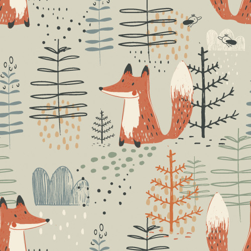 Jessica poplin foxes in the forest on beige