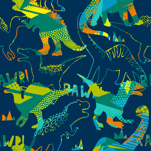 Jessica poplin dinosaurs on dark blue