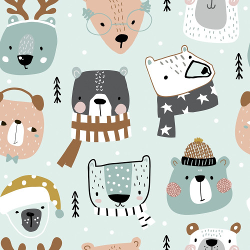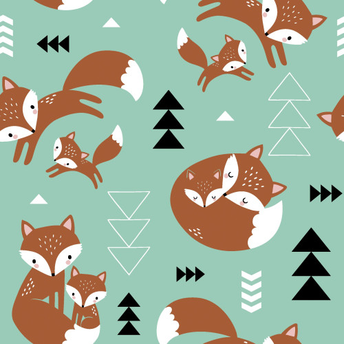 Poplin Jessica foxes on mint
