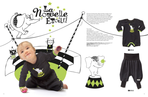 BOHO BABIESChildren dressed in Boho style with a circus theme. Harem pants, long sleeve bodysuits, terry vest, velvet jumpsuits and hoodie. Cute styles and patterns, pretty appliques, surprising colours. Sizes 56-92 cm