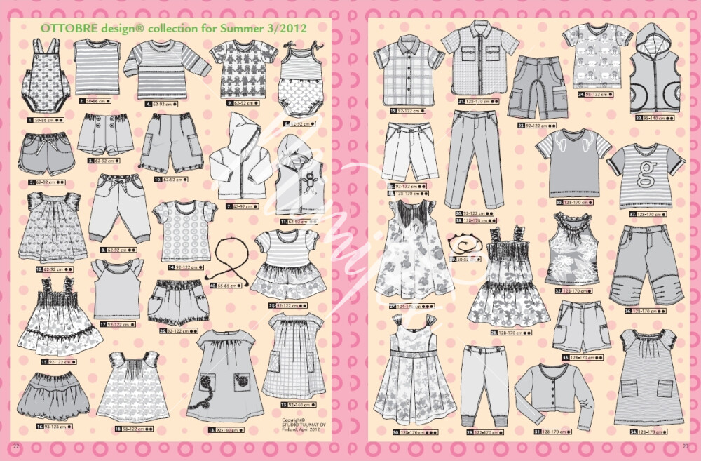 A popular Finnish children's fashion magazine, in English and German versions. It contains 40 modern and practical models in several sizes. 69 pages full of fashion, without unnecessary advertising.