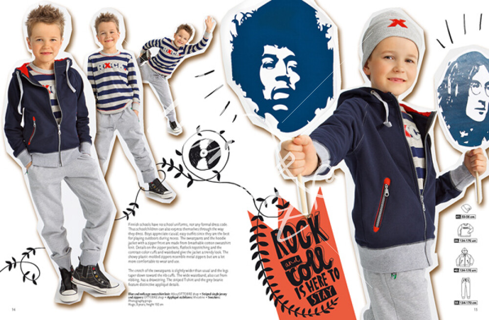 A popular Finnish children's fashion magazine, in English and German versions. It contains 40 modern and practical models in several sizes. 69 pages full of fashion, without unnecessary advertising.