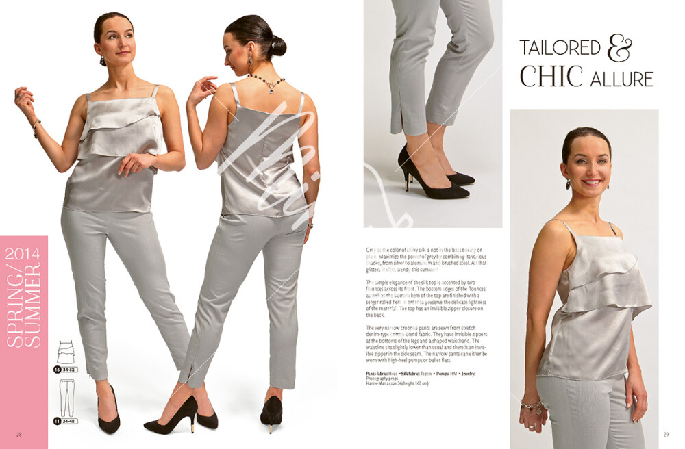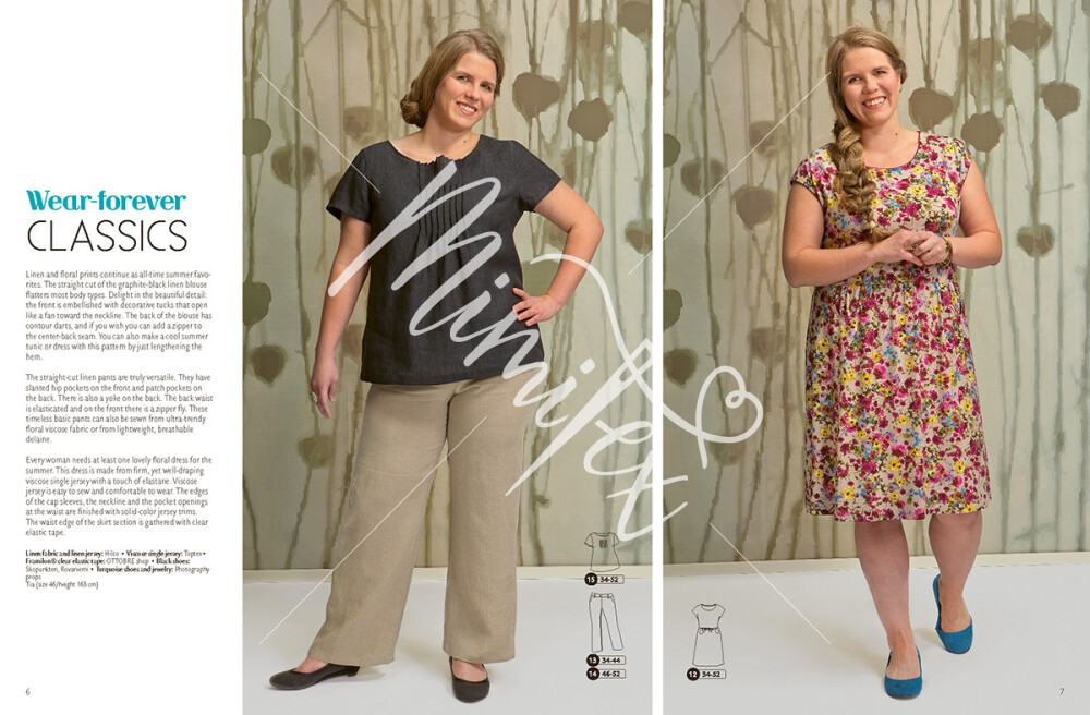 If you're looking for cuts for normal figures, not just skinny models, you'll find them here. The pattern attachments are very clear, if you don't fit classic clothing sizes and you have, for example, a different waist size and a different hip size, you can easily adjust these patterns to your exact needs.