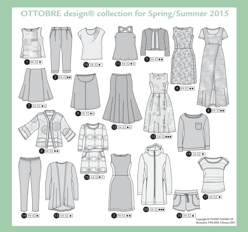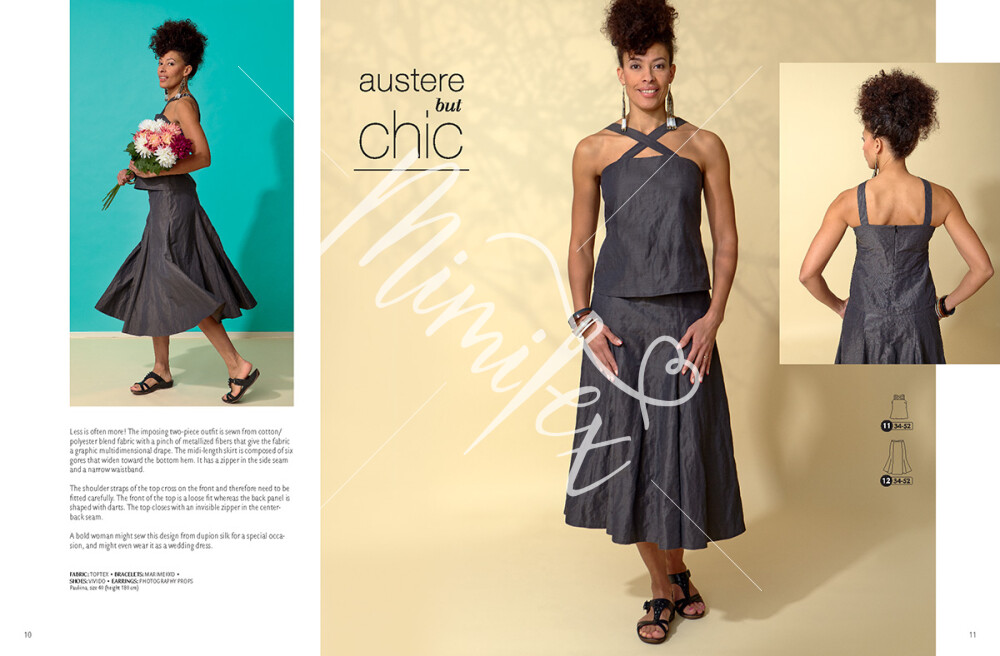 If you're looking for cuts for normal figures, not just skinny models, you'll find them here. The pattern attachments are very clear, if you don't fit classic clothing sizes and you have, for example, a different waist size and a different hip size, you can easily adjust these patterns to your exact needs.