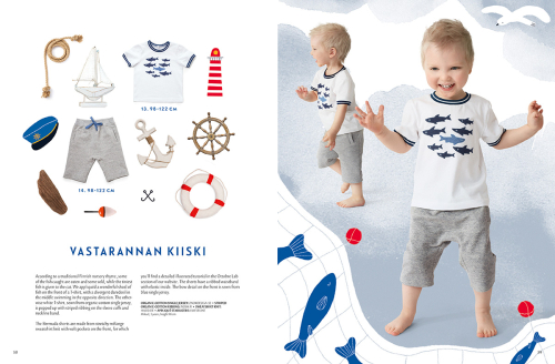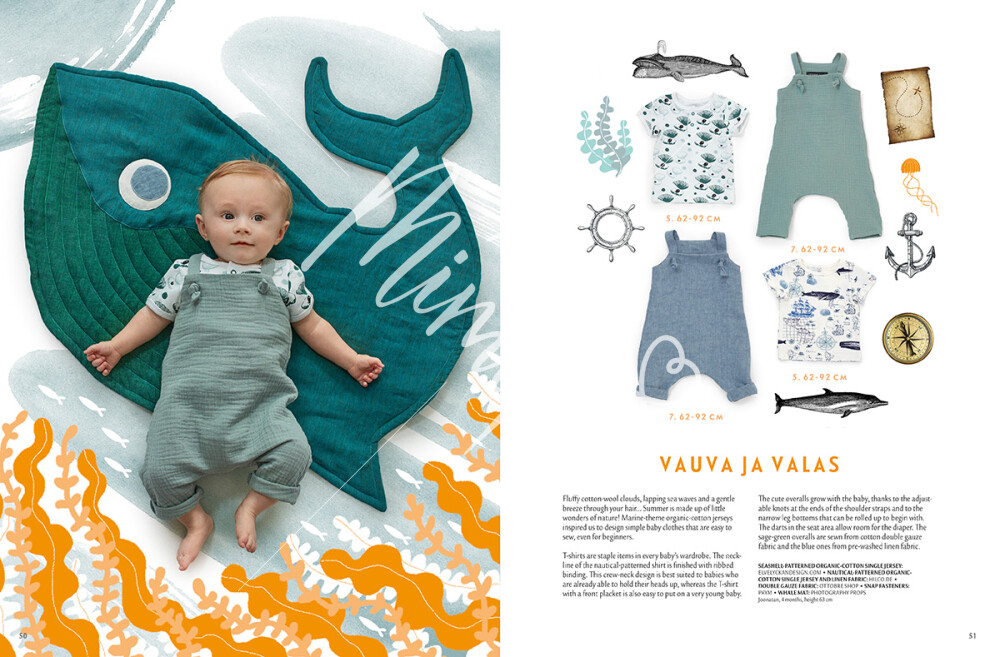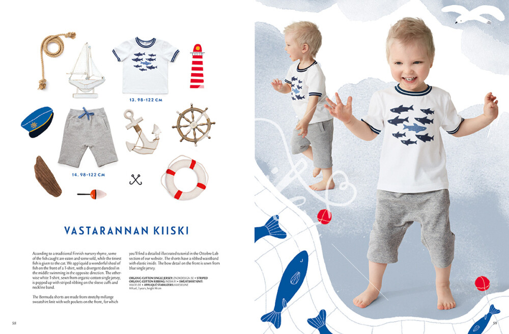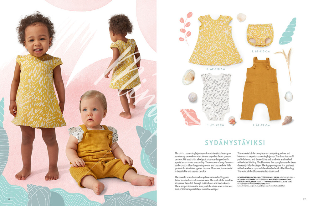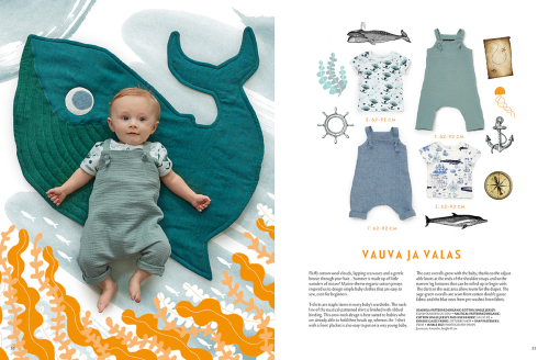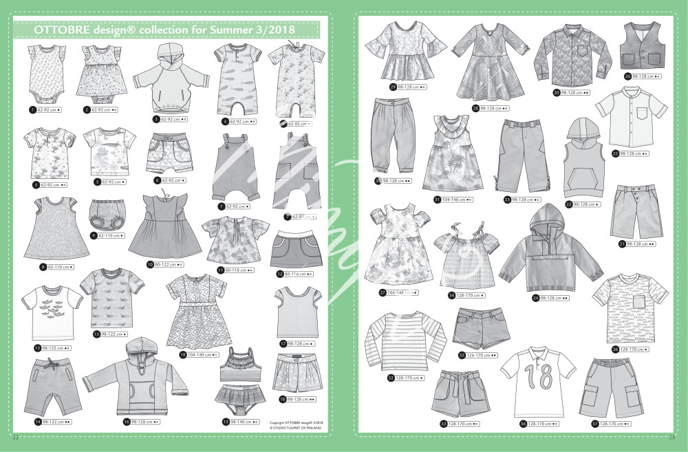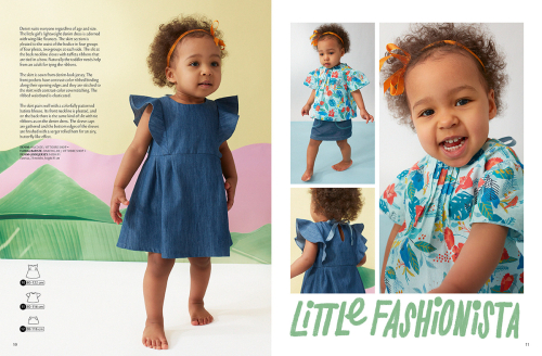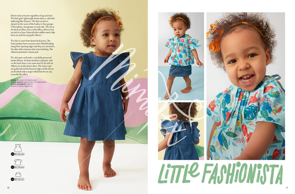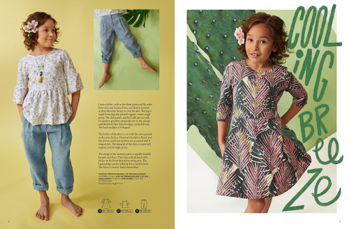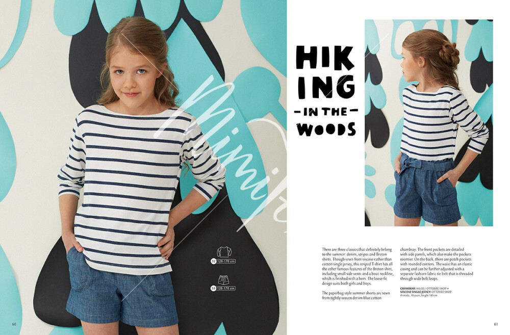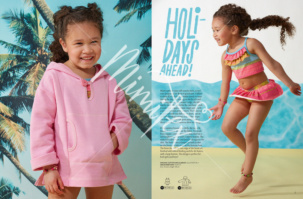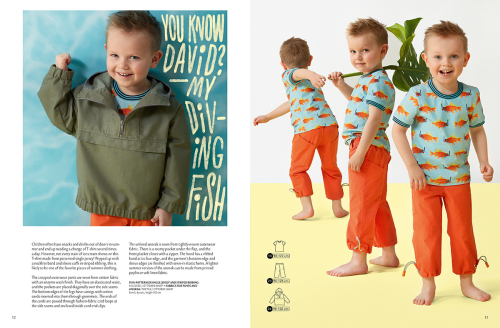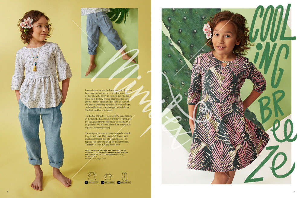 For kindergarteners and school kids The magazine features shirts, several versions of Bermuda shorts, dresses, girls' tops, t-shirts and a versatile vest, sweatshirt and pants.