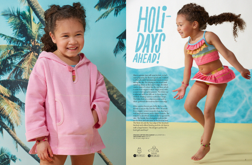 For toddlers and kindergarteners: dresses, blouse, t-shirt, cute swimsuit and sweatshirt for girls, bermudas, shorts and t-shirt for boys.