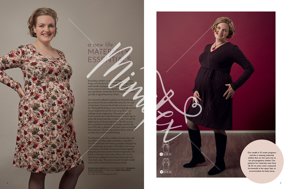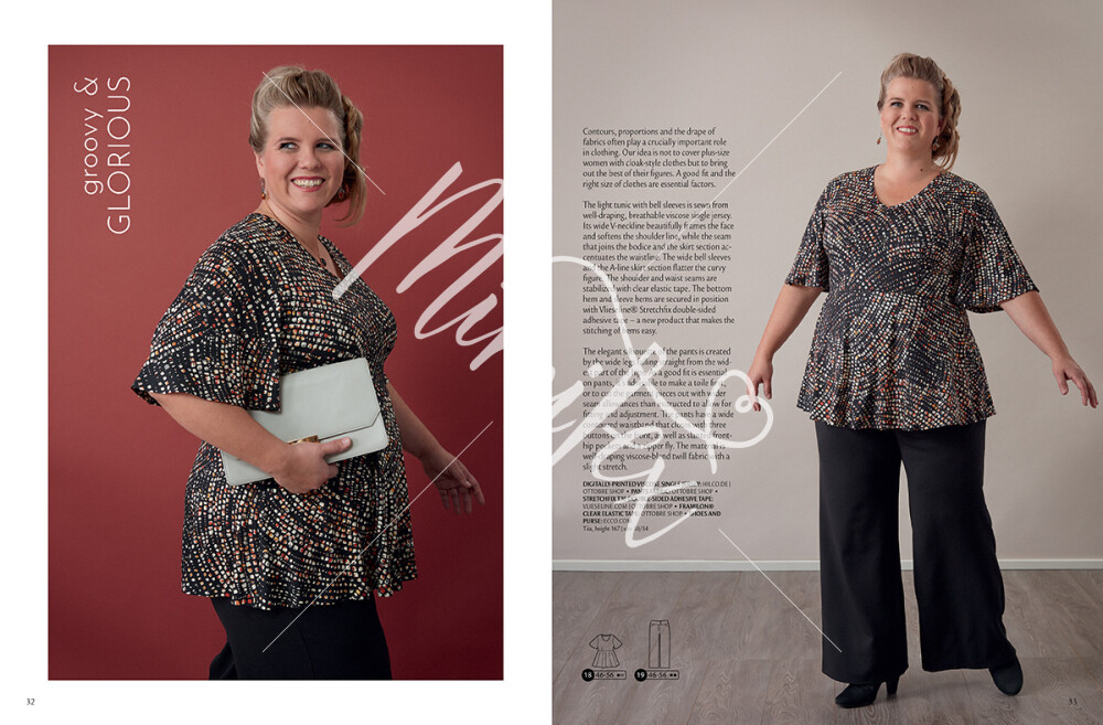 As last year, the larger women's sizes 46-56 have been kept in mind, with cuts for a very flattering knit dress, straight-cut trousers and a peplum blouse.