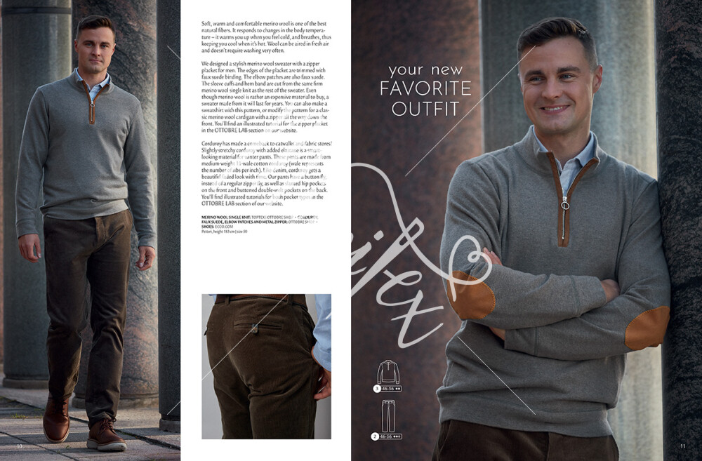 For the gents, this issue again features a variety of cuts that can form the backbone of a wardrobe: shirts, trousers, a t-shirt, a great jumper and an even more amazing jacket. Put last year's and this year's issue together and you have a complete wardrobe.