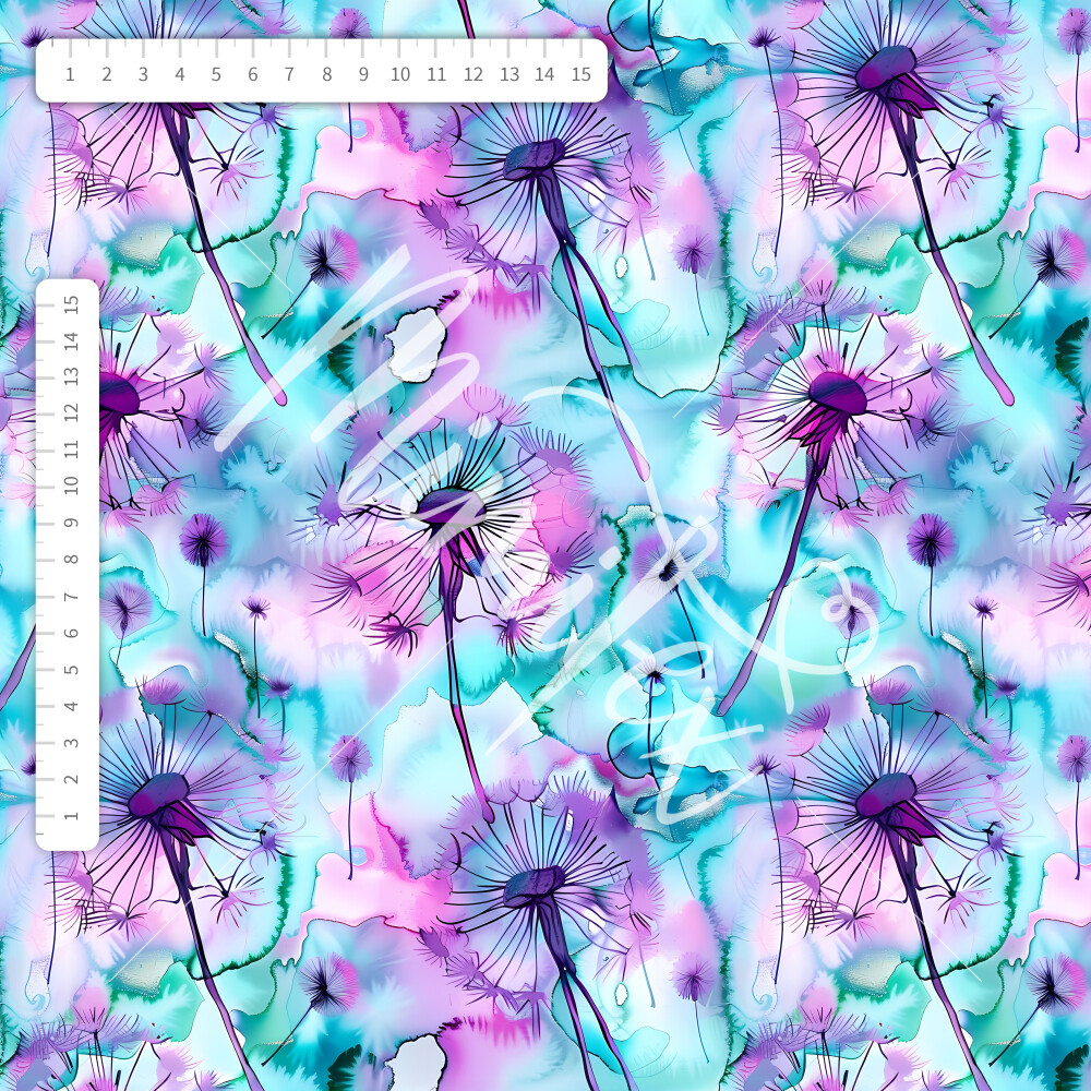 Softshell s barančekom akvarelové pampelišky tyrkys-fialové
