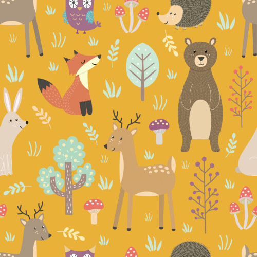 Kočárkovina lesní zvířátka na hořčicové