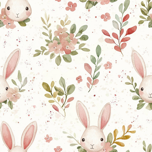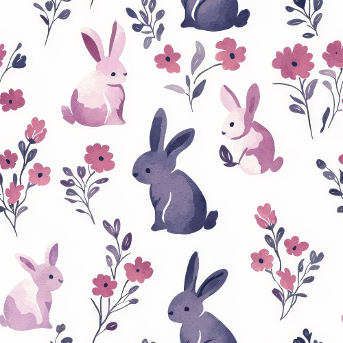 Fialovo růžoví králíčci s květy teplákovina [supreme]