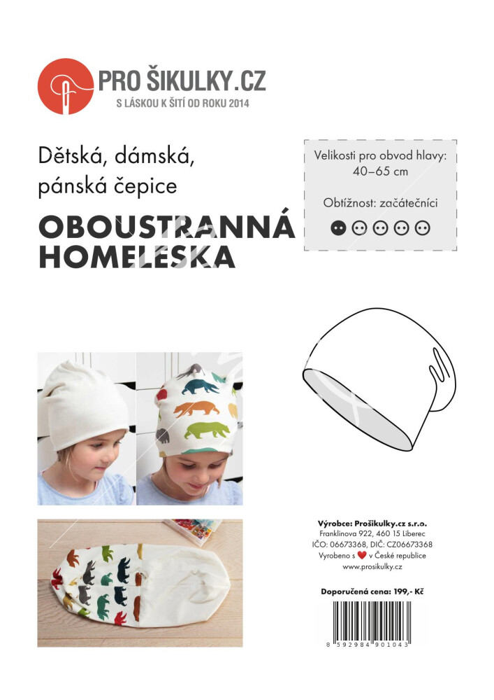 Oboustranná čepice homeleska | dětská, dámská, pánská