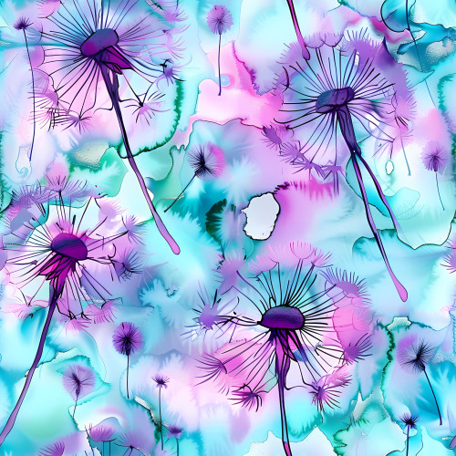 Softshell letní akvarelové pampelišky tyrkys-fialové