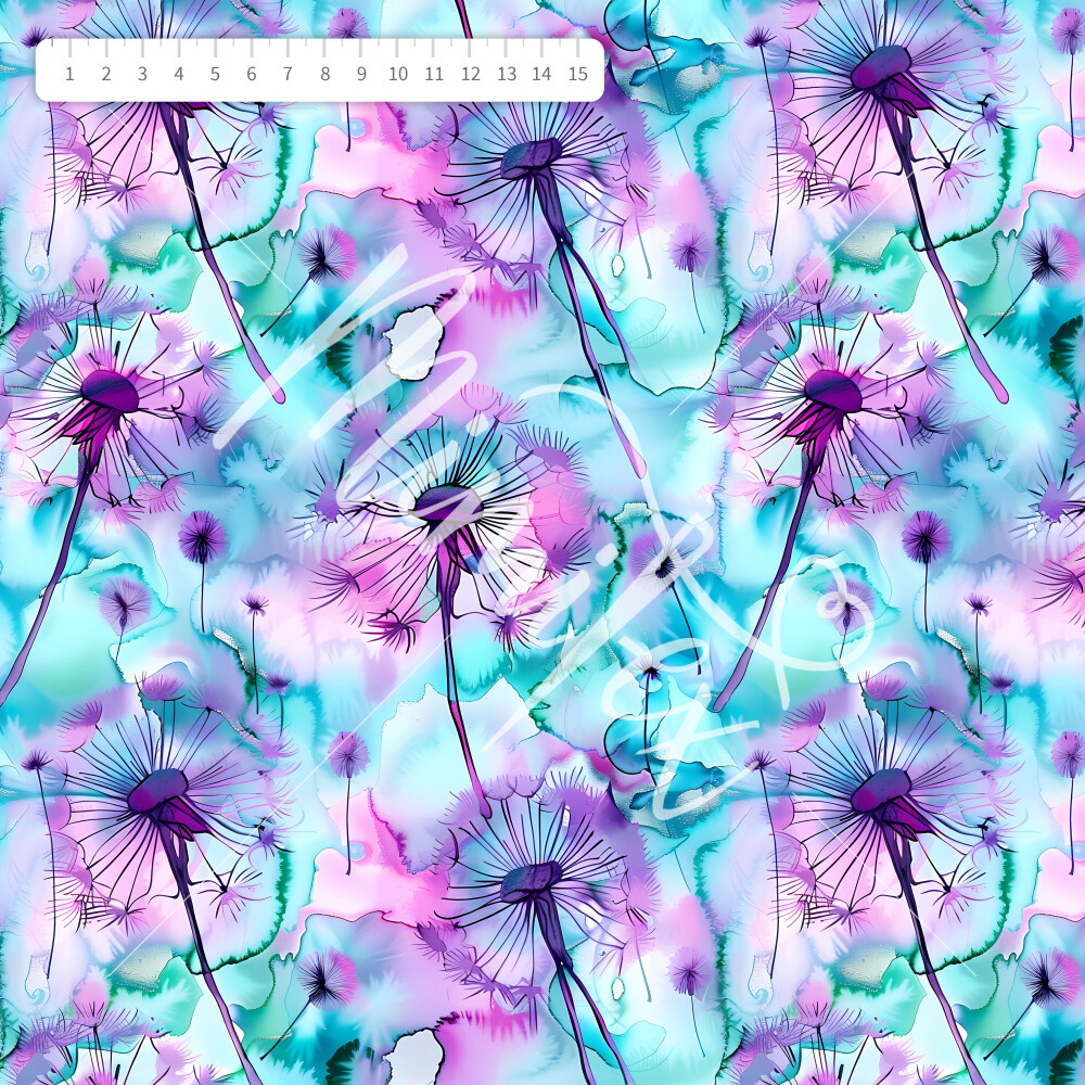 Softshell jarní akvarelové pampelišky tyrkys-fialové