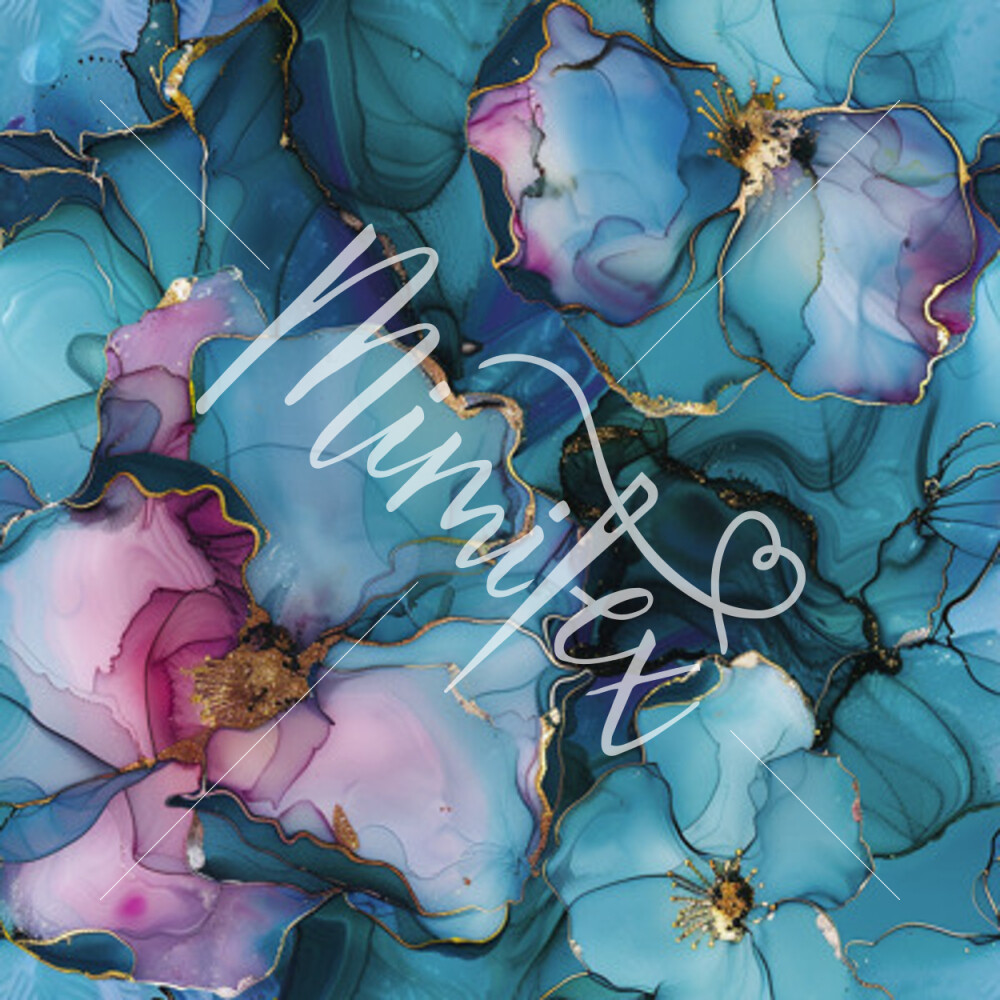 Tyrkysovo zlaté akvarelové květy teplákovina [supreme]