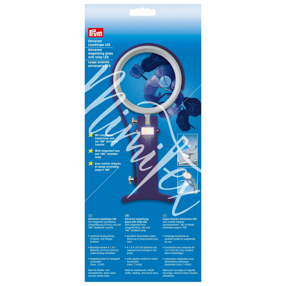 Univerzální lupa s otočným LED osvětlením a s věšákem za krk je skvělým pomocníkem na ruční práce, vyšívání, šití či čtení. Věšák za krk poskytuje pohodlí a volnost obou rukou při práci. Čočka umožňuje dvounásobné a osminásobné zvětšení objektu. Lupu také lze díky polohovacím šroubům postavit na rovnou desku stolu. Osvětlení zajišťují 4 AA baterie (nejsou součástí balení) nebo adaptérová zásuvka na max. 3V.